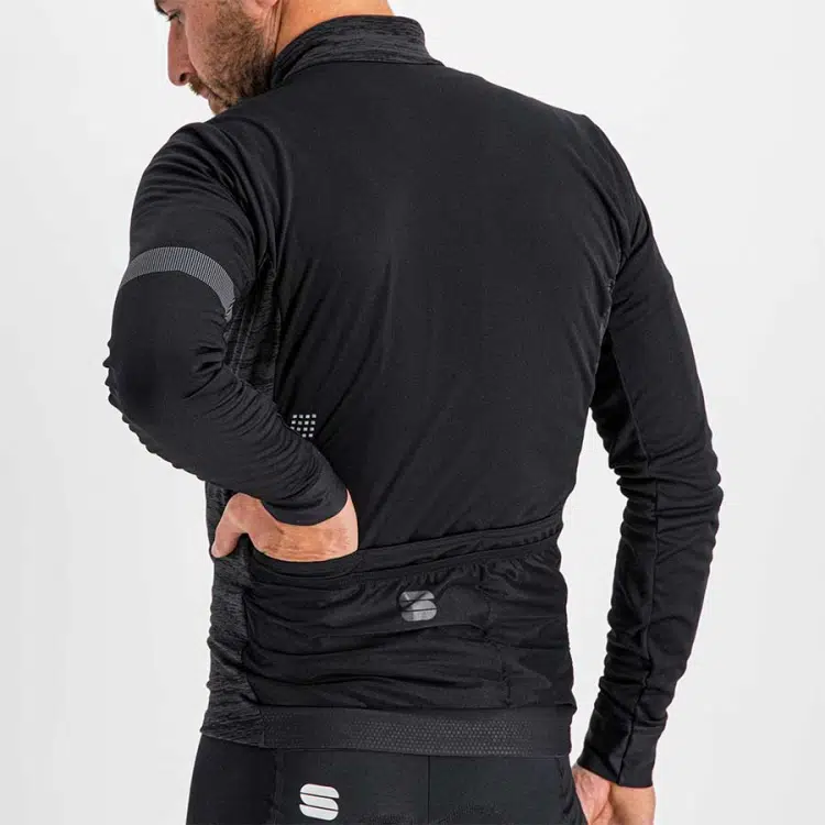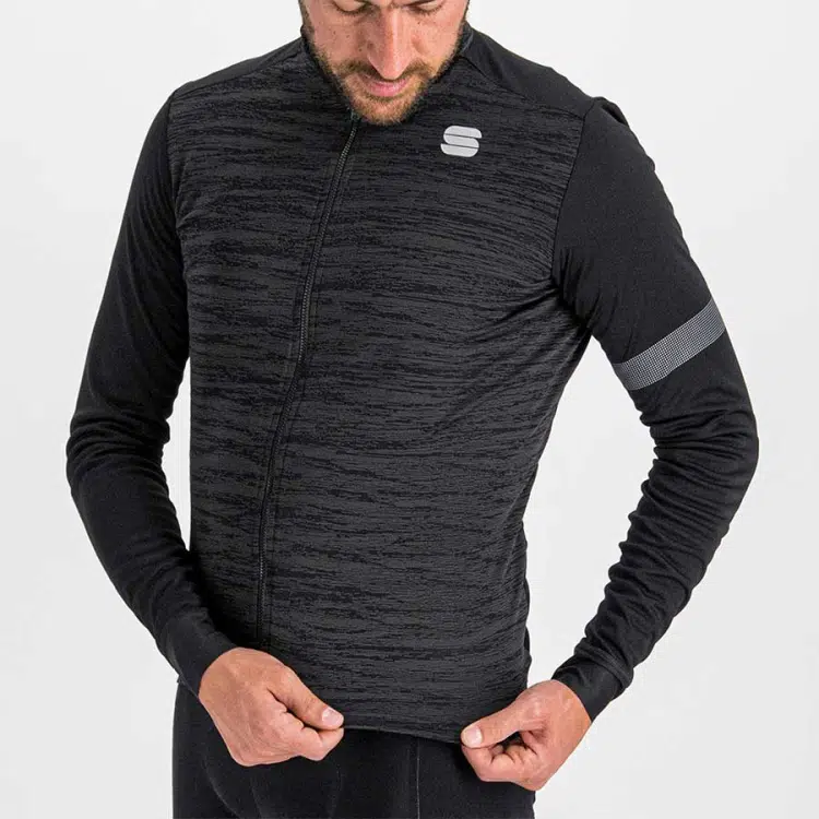 בד שמתאים לעונה הקרה, עם פס סילקון בחלקה האחורי של החולצה שמשמר אחיזה מקסימלית של החולצה על הגוף.