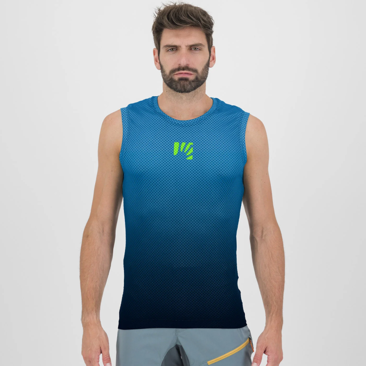 גופיית ריצה/ בסיס בעיצוב מנצח. בד רשת תלת מימדי המעניק נידוף זיעה ברמה גבוהה מאוד. הגופיה צמודה לגוף כך שמאפשרת להישמר צמודה מתחת לכל חולצת רכיבה. בעלת גימור צדדי שמתאים במדויק מעל מכנסי הרכיבה.